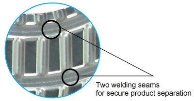 Podwójne spawanie zapewniające bezpieczne rozdzielenie produktów zwiększa również bezpieczeństwo eksploatacji.